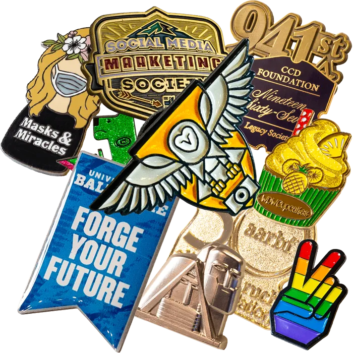 Die-Cast pins are perfect for designs that require interior cutouts or unique shapes. They deliver a high level of detail and dimensional depth unmatched by standard pins.